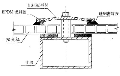 所謂干式,即不使用密封膠。因為有時可能發生板材膨脹量超過了密封膠的延伸極限的情況及為了美學方面的需要,干式裝配系統的優點是密封膠條壓緊在壓條(鋁合金型材)的里面,使板材在膨脹和受載位移動時可以自由地移動。